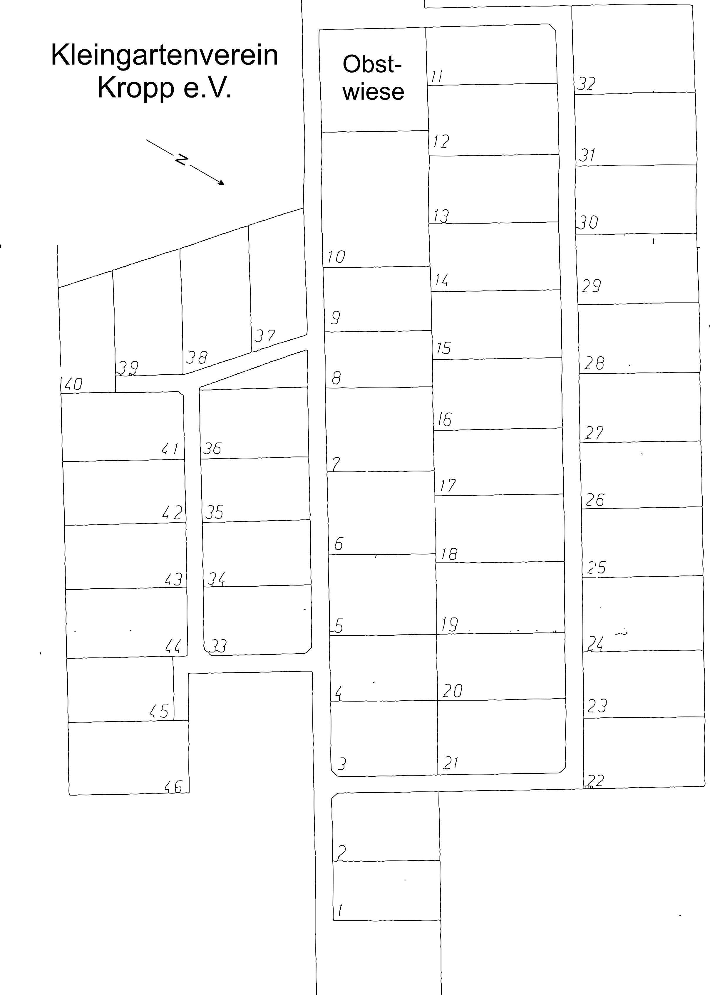 Angelegt ist die Anlage im Zentrum von Kropp. Durch die vielen Eichen wirkt die Anlage wie eine grüne Lunge. Die Parzellen sind umzäunt. Die Parzelle haben i.d.R. einen Brunnen und keinen Strom.